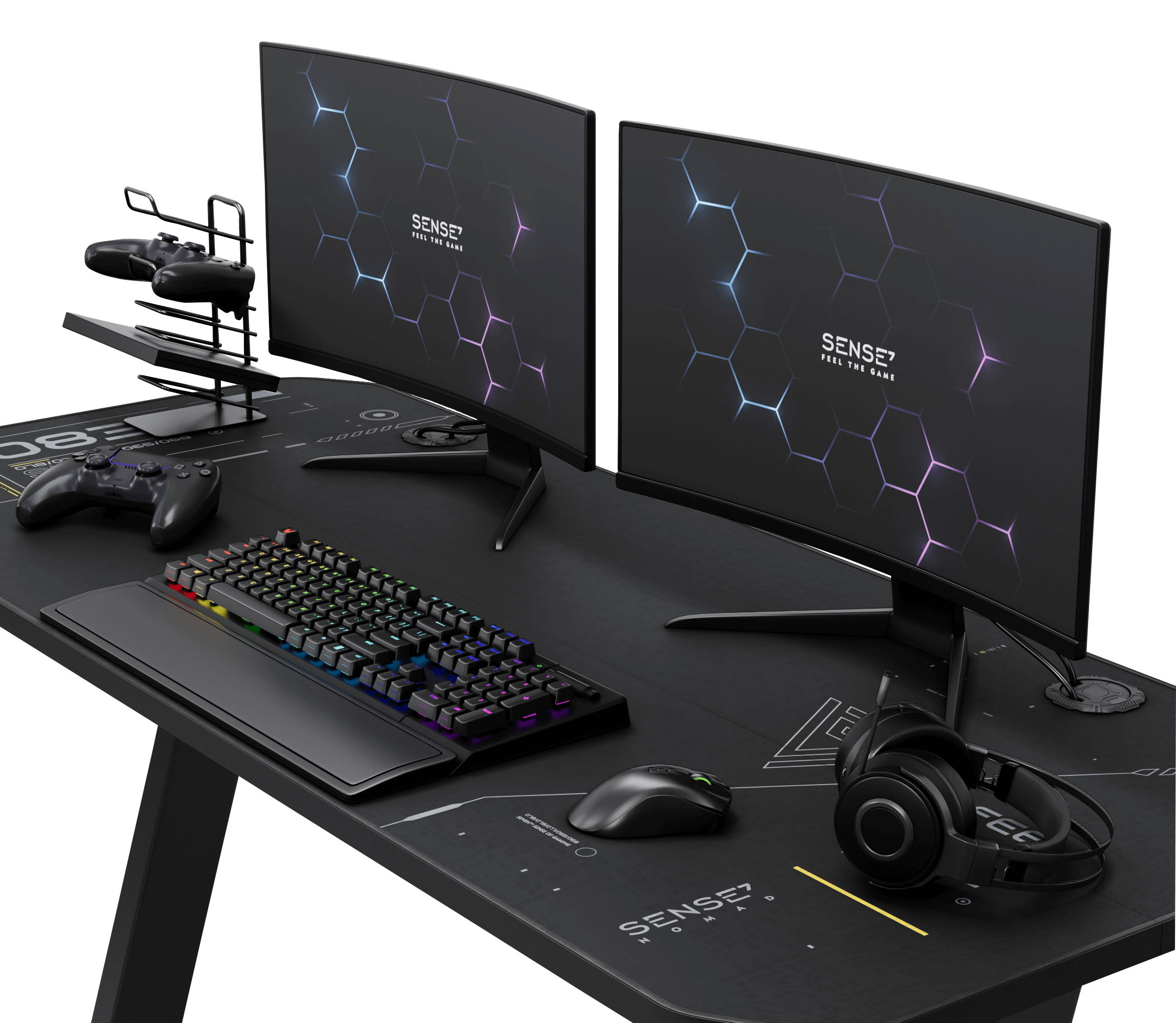 Zarówno gracze, jak i osoby pracujące zdalnie, coraz częściej nie ograniczają się do jednego monitora. Sense7 NOMAD Gaming Desk to idealny balans między kompaktowymi wymiarami biurka, a dużą powierzchnią roboczą. Głębokość blatu to 60 cm, a szerokość to aż 140 cm. Z łatwością zmieszczą się na nim dwa monitory o standardowych proporcjach bądź jeden ultrapanoramiczny.